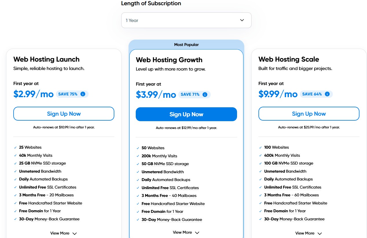 - Very cost-effective – Lowest plan starts at $2.99/mo and support up to 100 websites
